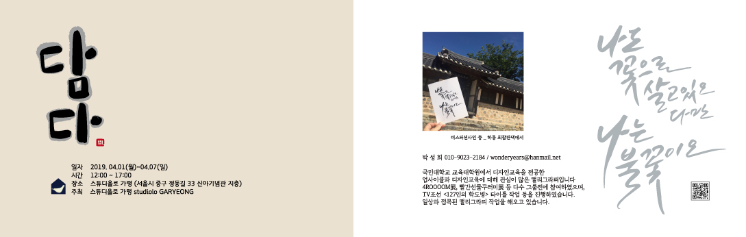 담다展은 세 작가의 시선으로 사각 프레임 속에서 나누고 싶은 이야기를 담고 있습니다
