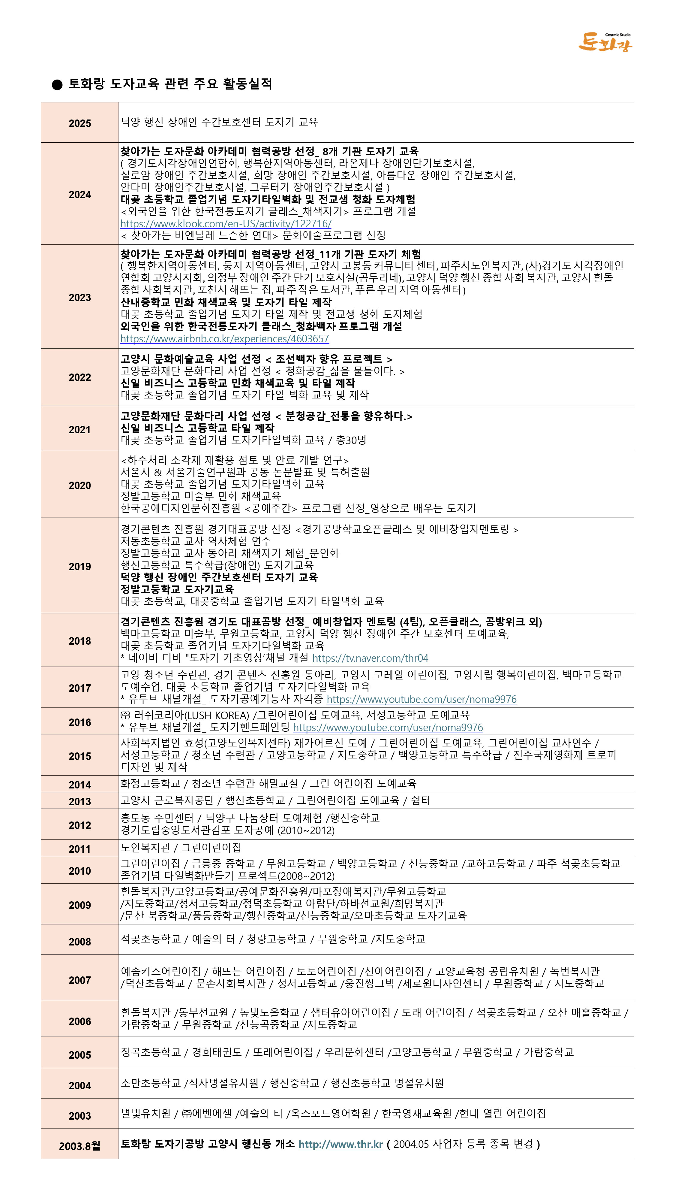 토화랑은 2003년 8월에 고양시 행신동에 개소하여