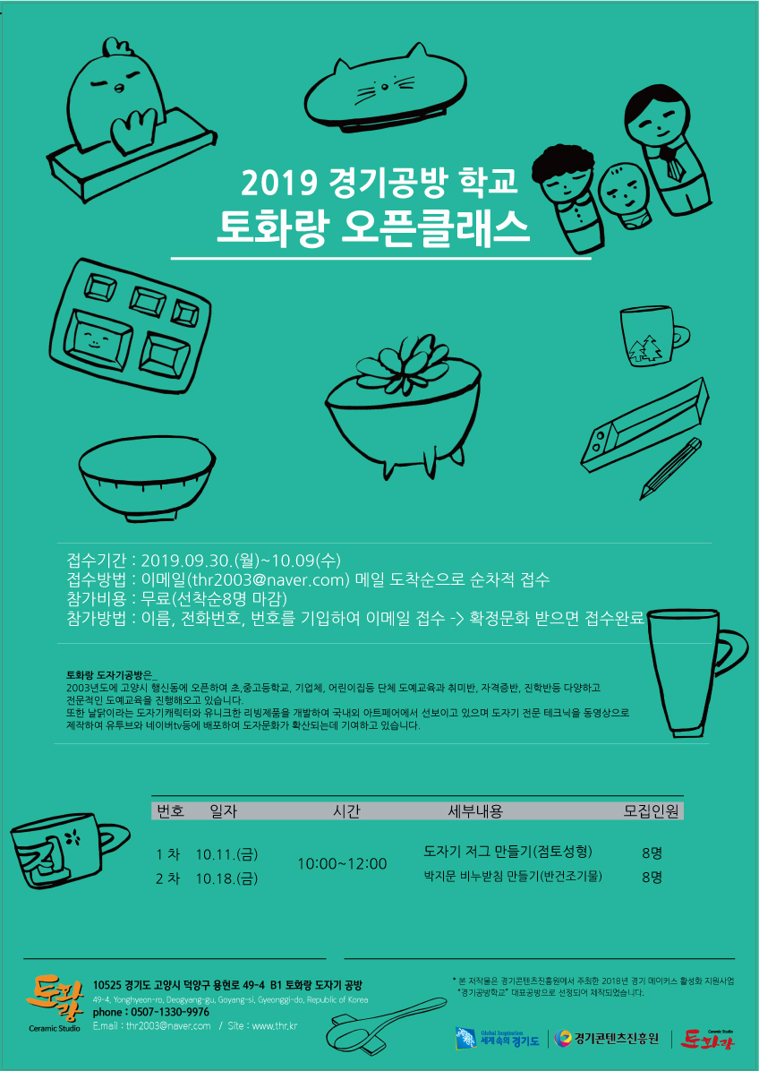 토화랑은 2018년 경기공방학교 대표공방으로 선정되어