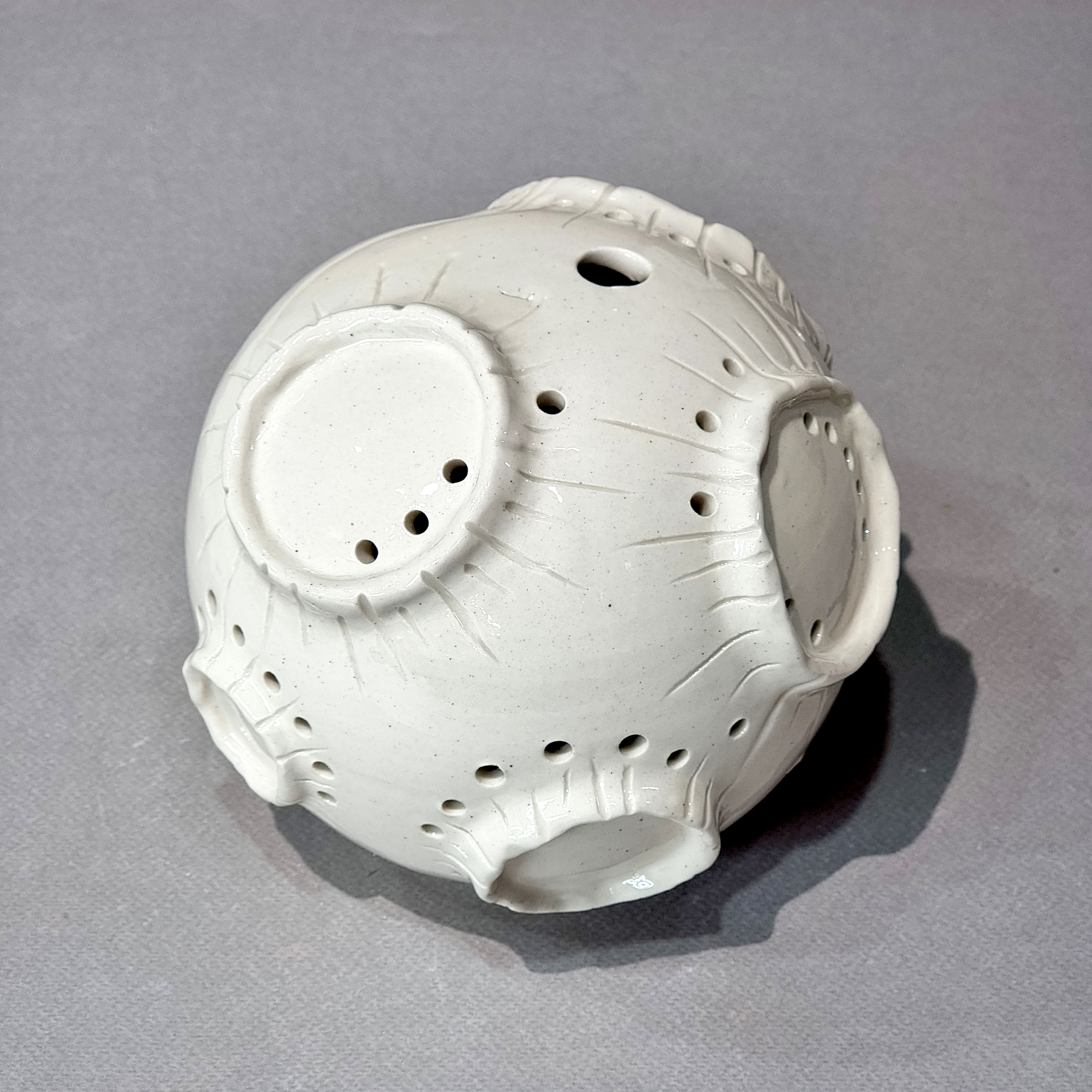 달의 표면을 표현하기 위해 푸른색과 하얀색의 유약을 발라 구웠습니다.