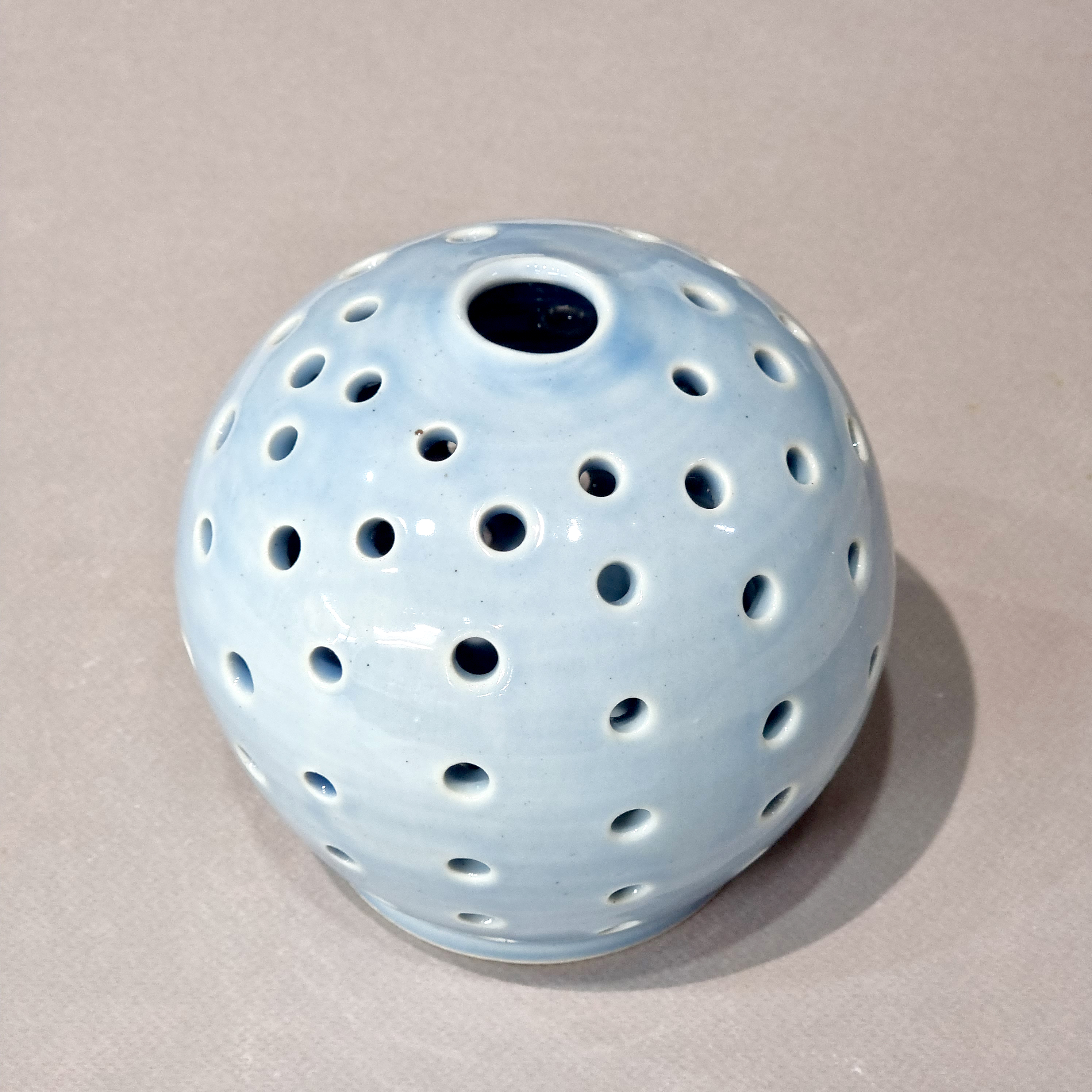 달의 표면을 표현하기 위해 푸른색과 하얀색의 유약을 발라 구웠습니다.