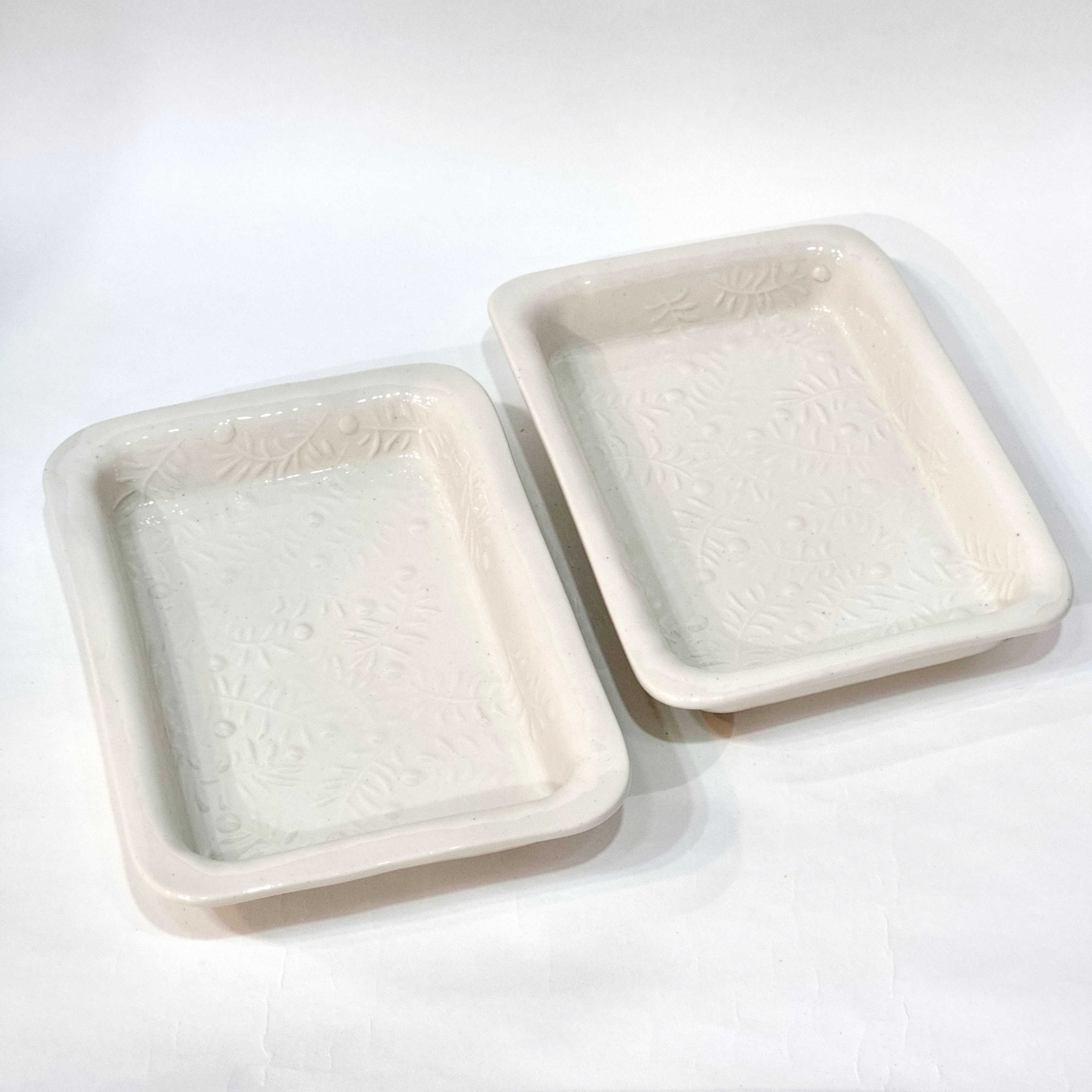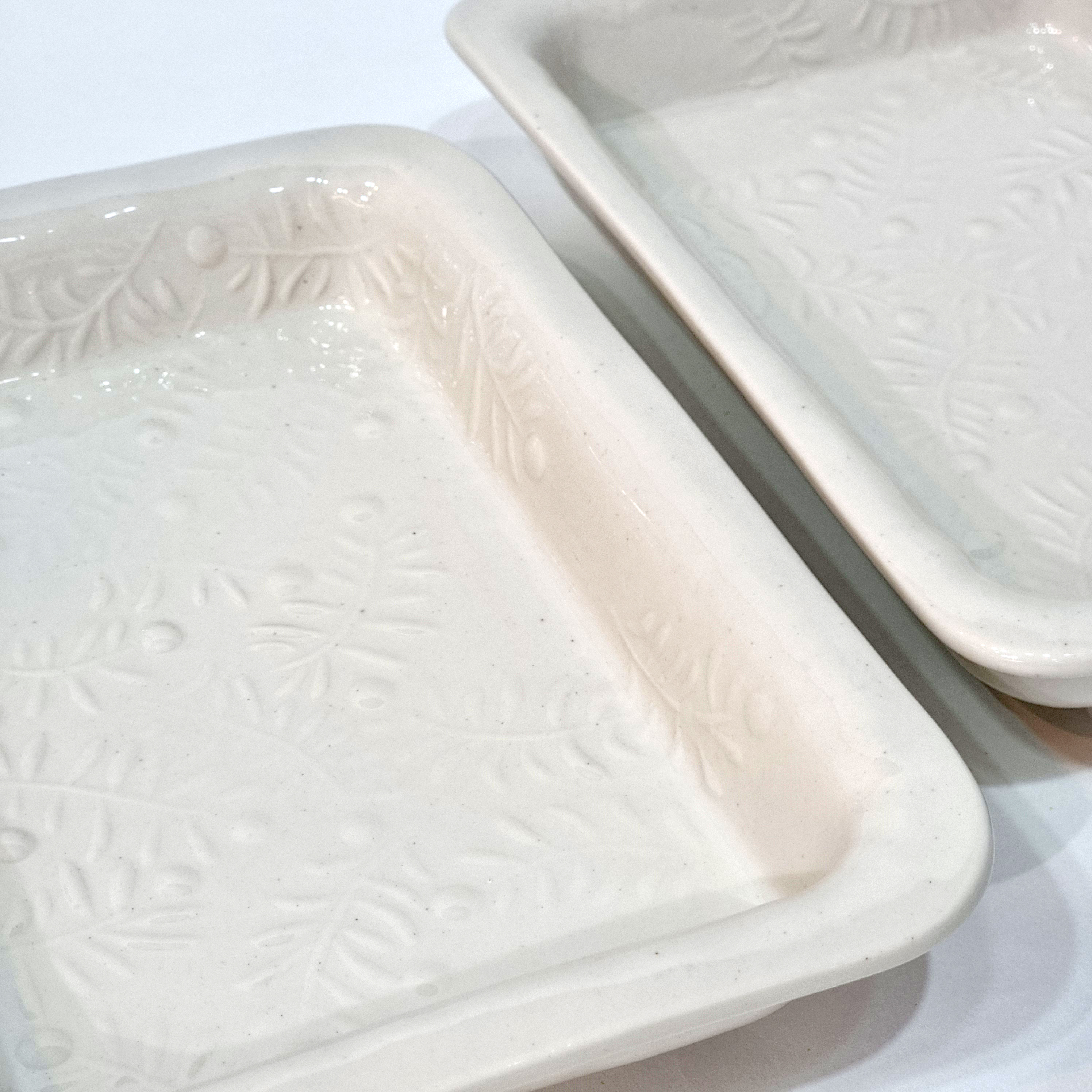 세 번째 작품은 석고 몰드에 투각을 하고 압축 성형한 사각 접시입니다.