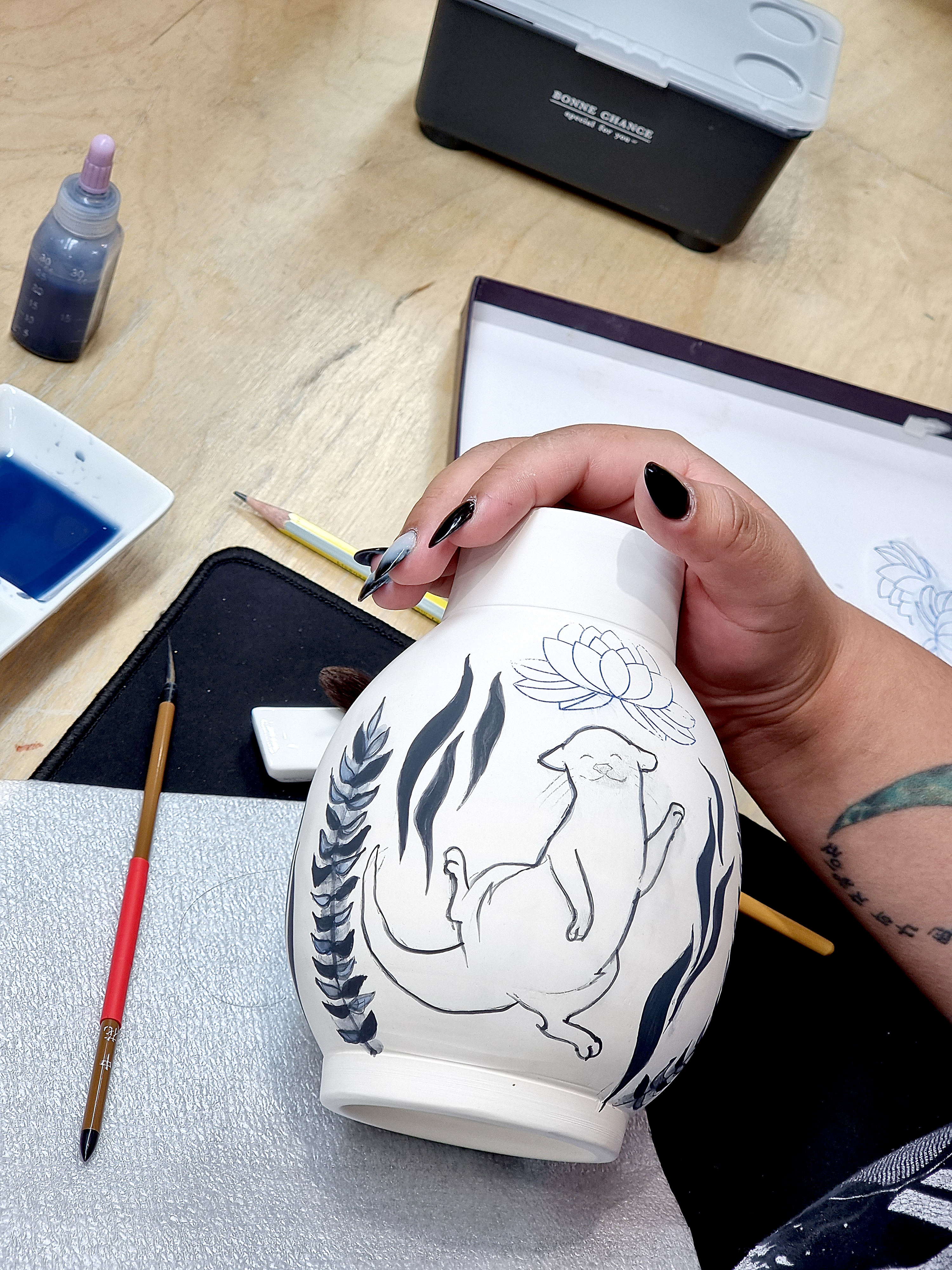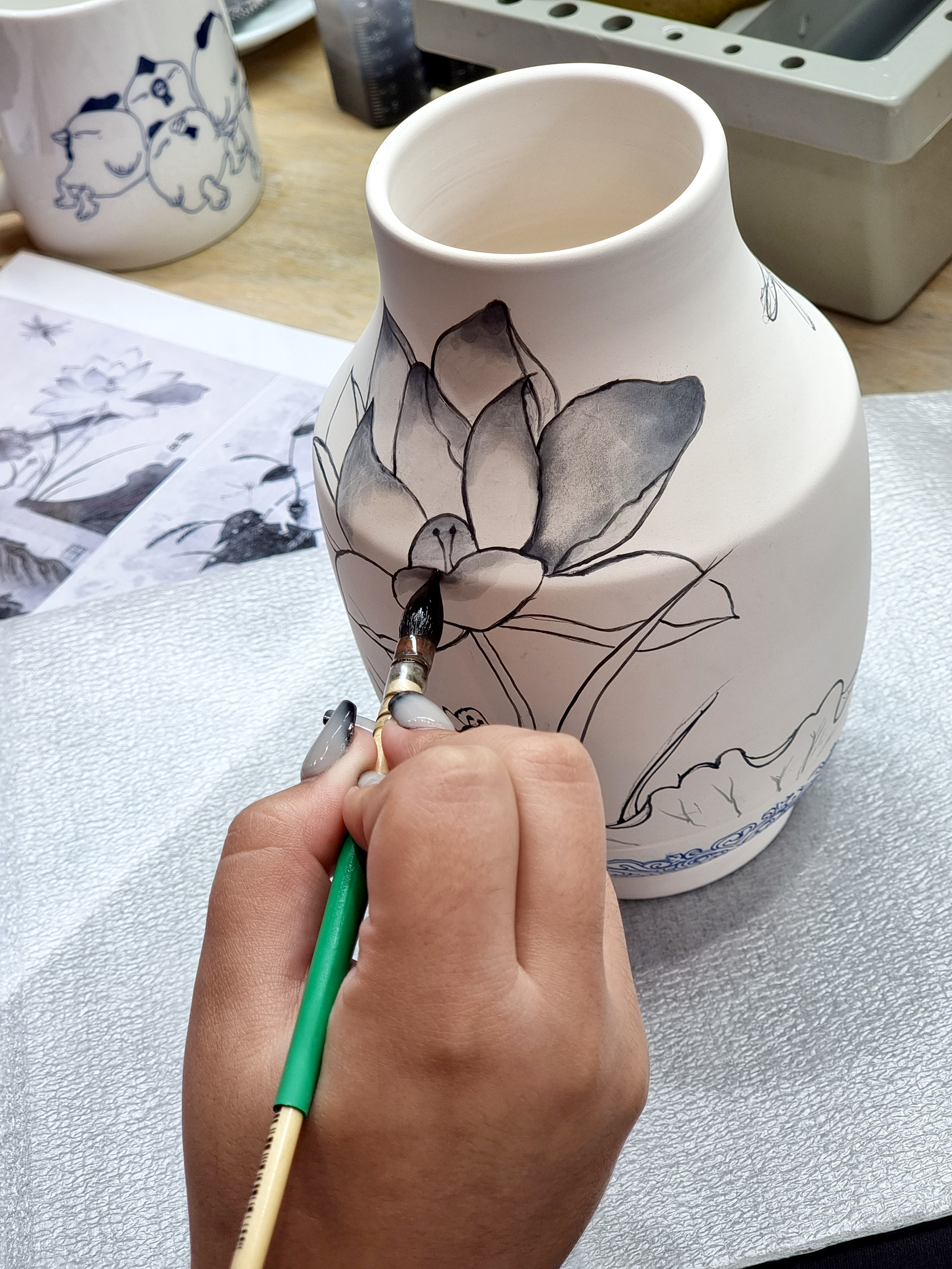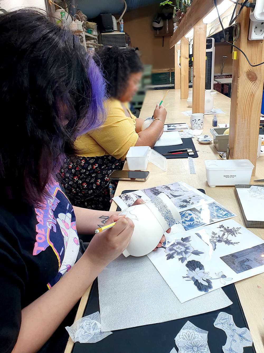 저희 공방에서 청화 백자 화병을 직접 만드는 체험을 하며 즐거운 시간을 보냈습니다.